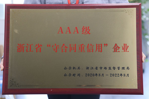 福斯特獲浙江省AAA級“守合同重信用”企業稱號,表明了公司誠信守信建設得到了政府主管部門和社會各界的高度認可,彰顯了公司誠信立企的核心價值觀,展示了公司重信用守信用的良好形象。此榮譽,是鞭策更是激勵,公司將更加努力,堅持誠信立業、誠信展業,為推動行業的誠信發展盡一份力。