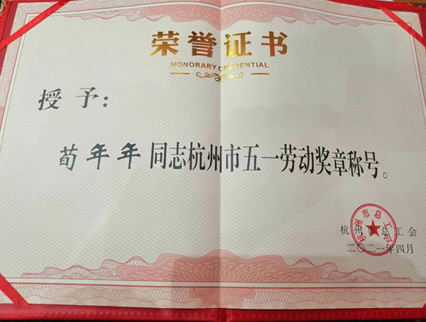 福斯特荀年年同志榮獲“杭州市五一勞動獎章”