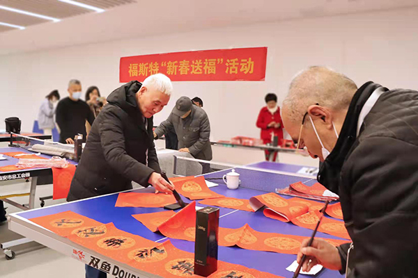 1月18日,臨安區老年書畫研究會王以軍會長、安榮平副會長一行,來福斯特開展“新春送?!被顒印8魑粫ɡ蠋煋]毫潑墨、運筆如飛,為員工送上一幅幅墨香四溢的春聯、福字。員工們十分欣喜、愛不釋手,現場熱鬧非凡,洋溢著濃厚的節日氛圍。