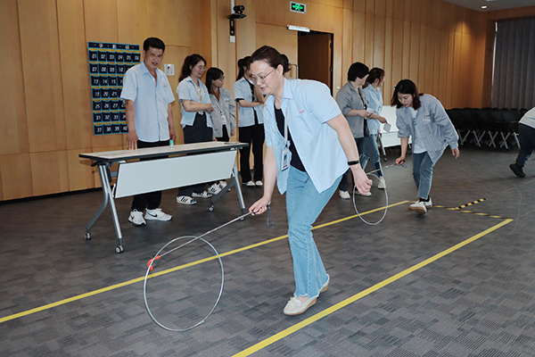 中午,福斯特工會組織開展“童趣端午”主題文化活動,通過夾彈珠、踢毽子、轉陀螺、滾鐵環等懷舊小游戲,讓員工重溫童年的時光。每完成一個小游戲任務,可以獲得一枚印章,集齊四枚就能兌換一份小禮品。員工們玩的不亦樂乎,紛紛表示既有趣又溫馨,仿佛回到了童年。